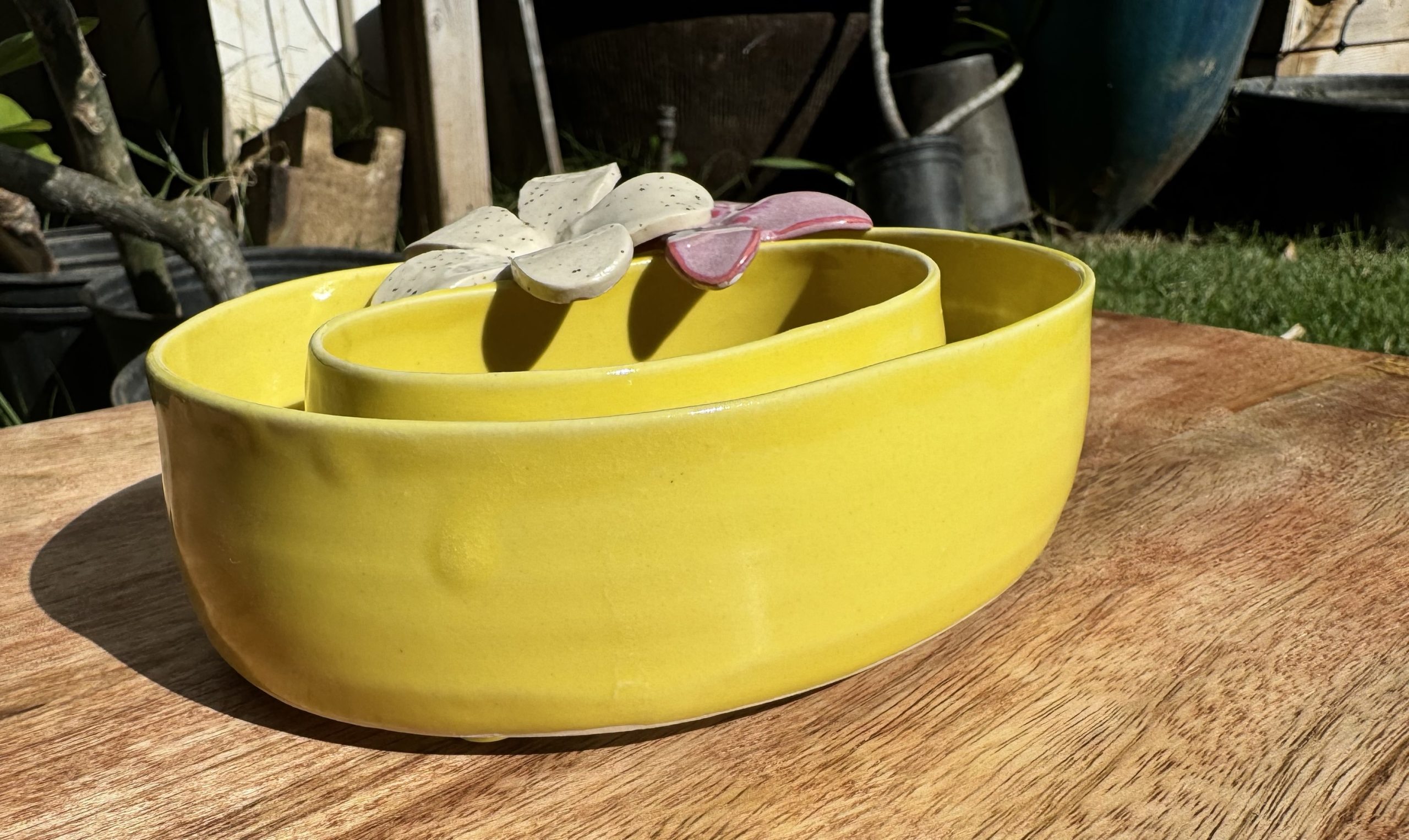 Medium lei shape vase. Approximately 6-7 inches long. ***Flowers not included***